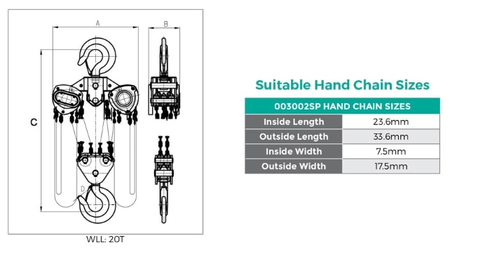 The Austlift W4 Chain Block is an industrial-grade, manually operated chain block designed for a range of lifting applications, including mining, construction, industrial, and domestic use. Its robust construction and lightweight design make it a reliable choice for various lifting needs. Available in multiple heights and colours upon request, this chain block ensures ease of operation and durability.