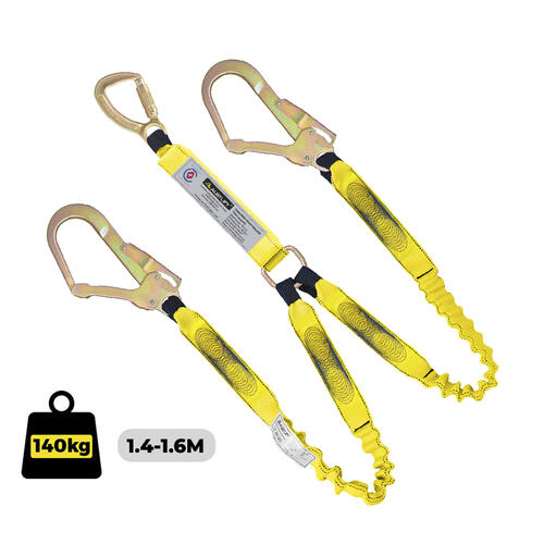 The Double Elastic Lanyard with Triple Action Hook and Steel Scaffold Hooks offers enhanced safety and flexibility for various work-at-height applications. Featuring 44mm wide tubular webbing, this lanyard ensures durability and reliability. Its elastic design allows for both relaxed and expanded lengths, providing ease of movement and reducing trip hazards. The integral energy shock absorber and high-strength alloy steel hooks add an extra layer of protection for the user.