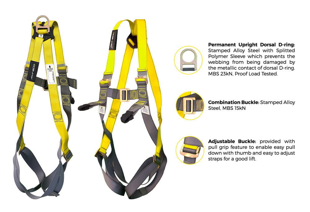 The Maxi Harness Tradesman is a robust full-body harness designed for demanding construction and maintenance tasks. Featuring a large, permanently upright dorsal D-ring and front chest loops for fall arrest, this harness provides superior safety and comfort. The adjustable shoulder, chest, and leg straps ensure a secure fit for various body sizes, making it a versatile choice for workers across different industries. Certified to AS/NZS 1891.1, it is suitable for use in construction, ladder work, scaffolding, warehouse, and roofing applications.