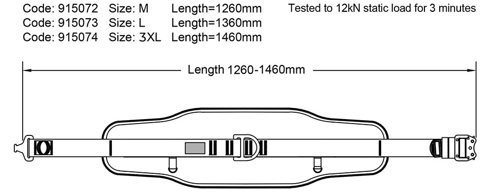 Waist Belt for working in Restraint. Quick connect buckle, rear D Ring, Back Pad